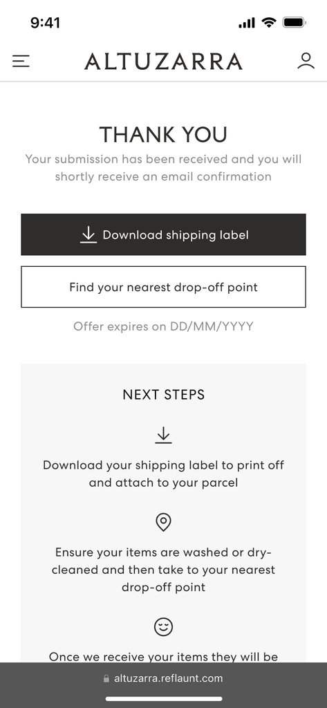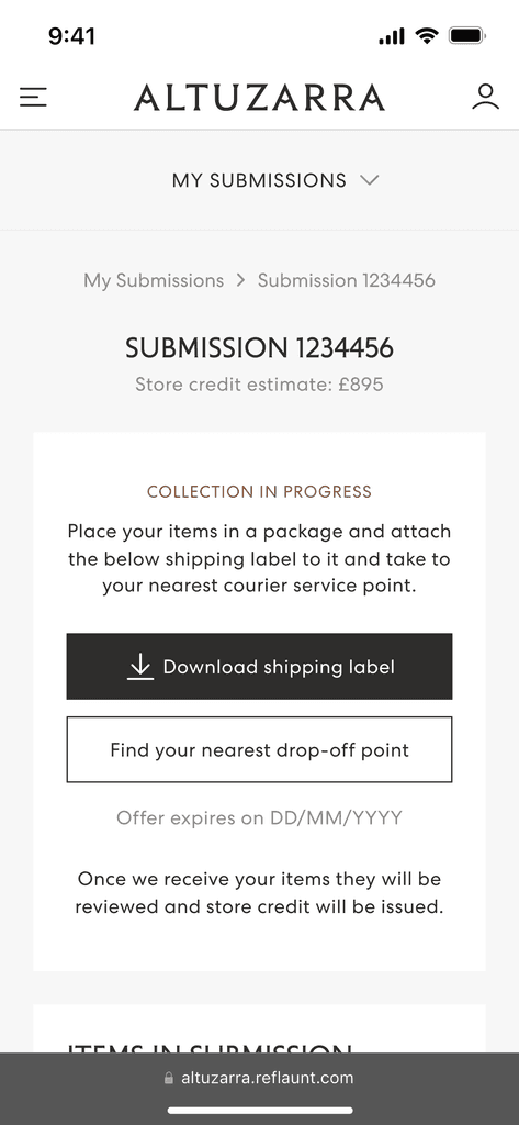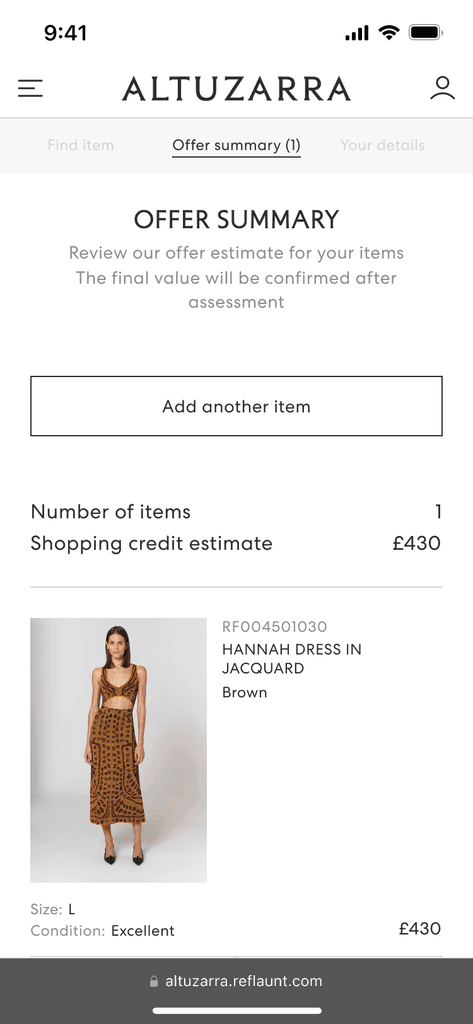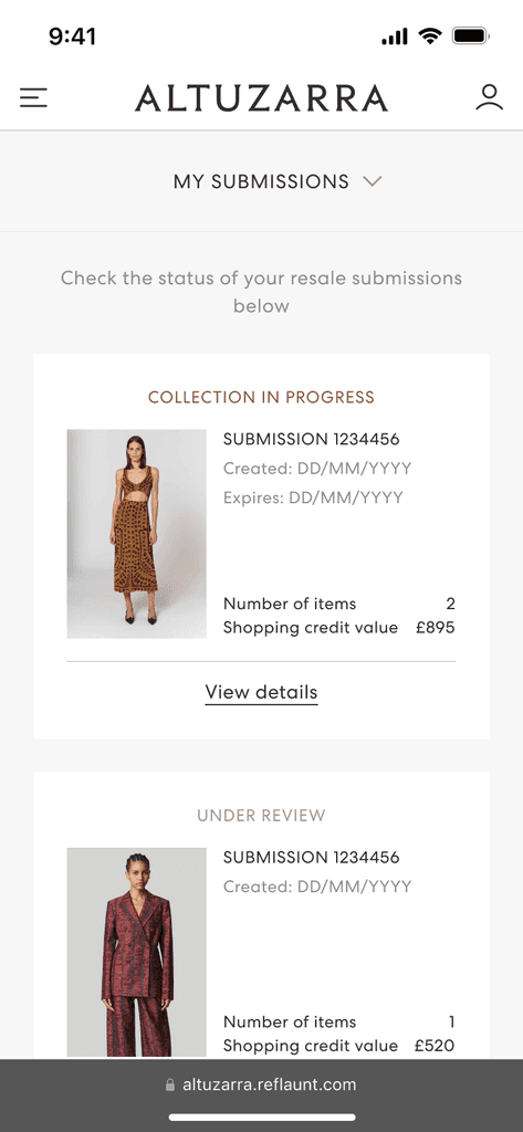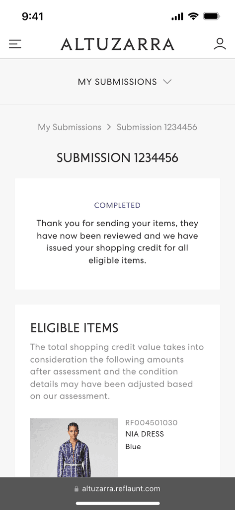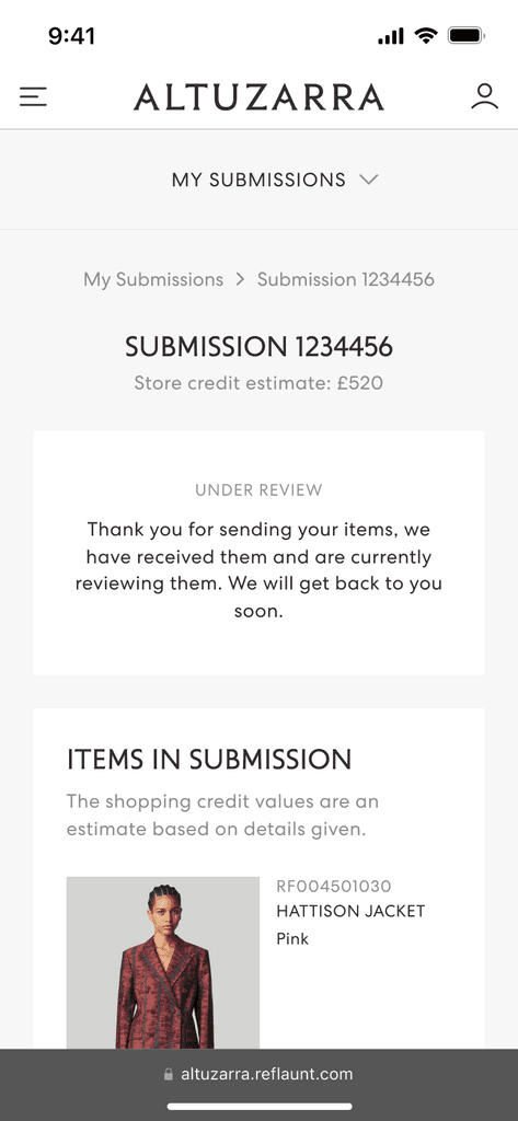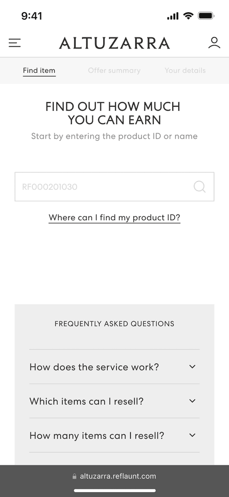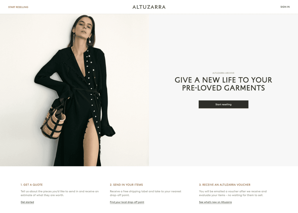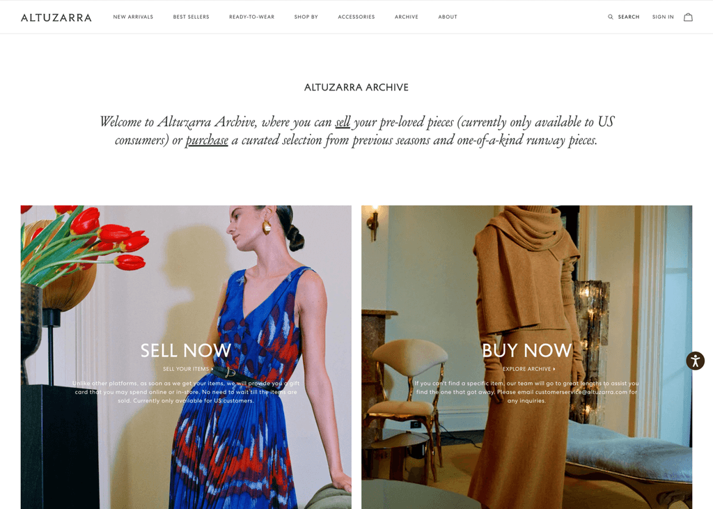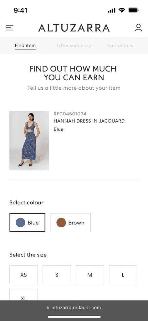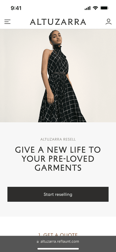 In late 2023, Reflaunt launched the Take-back product with it’s first client, Altuzarra. The brand created a section of their main website dedicated to reselling named Altuzarra Archive where the customer is able to shop pre-loved items as well as access the Take-back service through and external link.